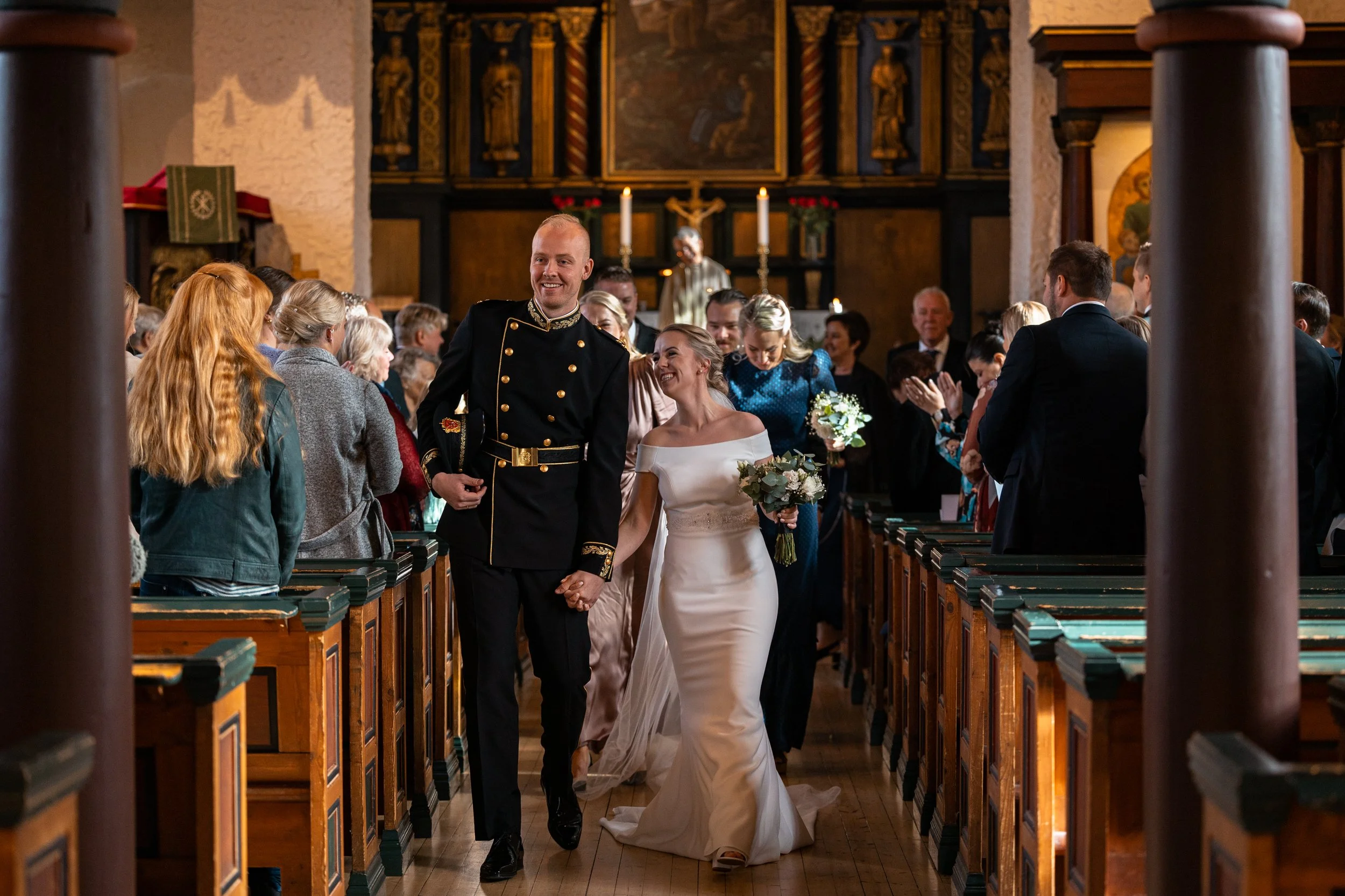 Jeg dukker opp i kirken og tar bilder under vielse, detaljbilder, utenfor vielse med familie, forlovere +, samt de viktige portrettene av brudeparet. Denne fotograferingen har ingen tidsbegrensning, men inkluderer kun det som står.